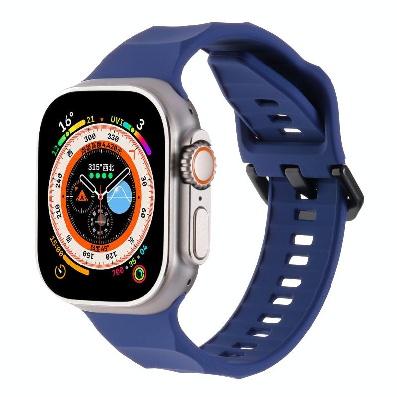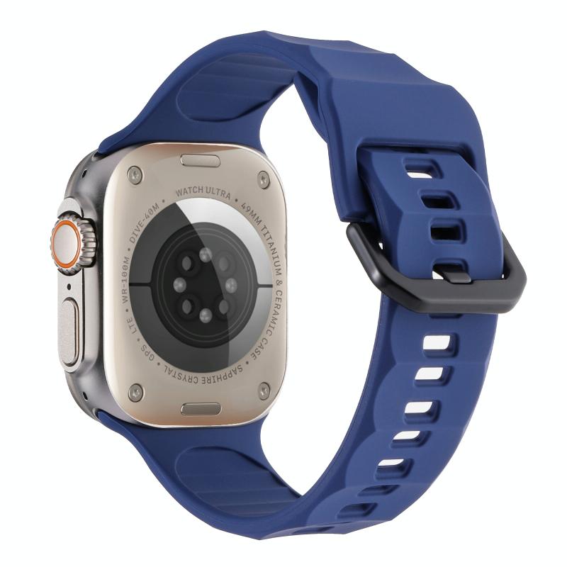 For Apple Watch 8 45mm Ripple Silicone Sports Watch Band(Dark Blue)
