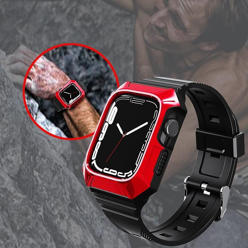 Θήκη βαρέως τύπου για Apple Watch 9 41mm από πολυανθρακικό με ενσωματωμένο λουρί TPU (Μαύρο)