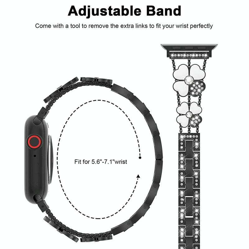 For Apple Watch 9 41mm Petal Metal Diamond Watch Band(Black+White)