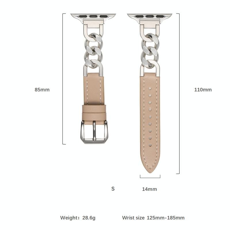 Για Apple Watch SE 2022 40mm Αλυσίδα Αυθεντικό Δερμάτινο Λουρί, Μέγεθος: S (Χρυσό Σκούρο Καφέ)
