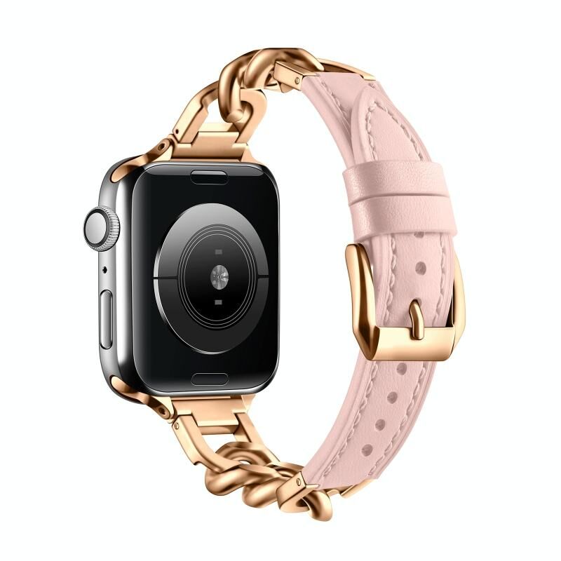 Για Apple Watch SE 2022 40mm Αλυσίδα Αυθεντικό Δερμάτινο Λουρί, Μέγεθος: S (Ροζ χρυσός)