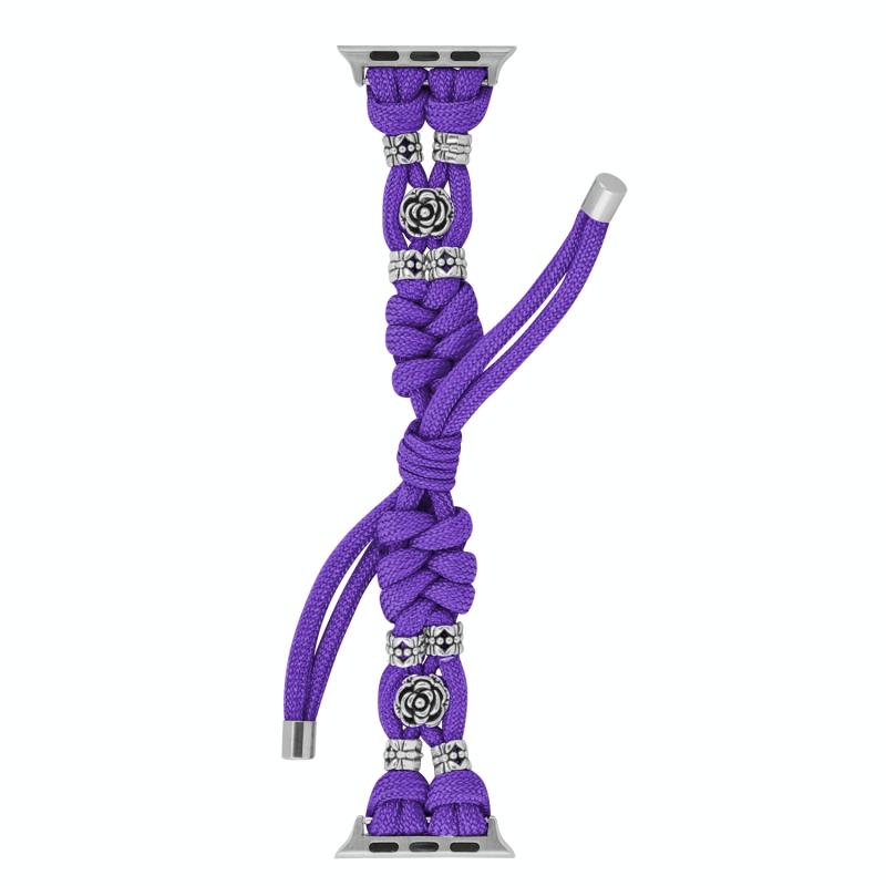 Για Apple Watch SE 2022 40mm Χρυσάνθεμα Χάντρες Παρακορδ Πλεγμένο Λουράκι Ρολογιού (Μωβ)