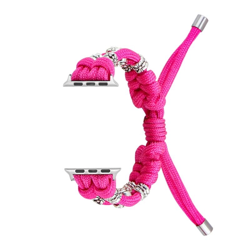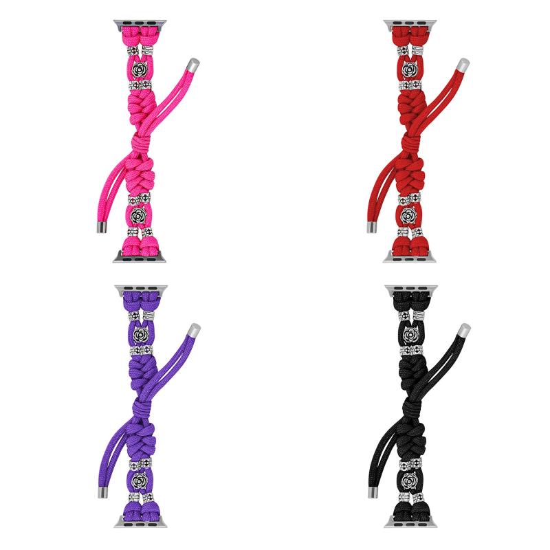 Για Apple Watch SE 2022 40mm Χρυσάνθεμα Χάντρες Παρακορδ Πλεγμένο Λουράκι Ρολογιού (Ροζέ κόκκινο)