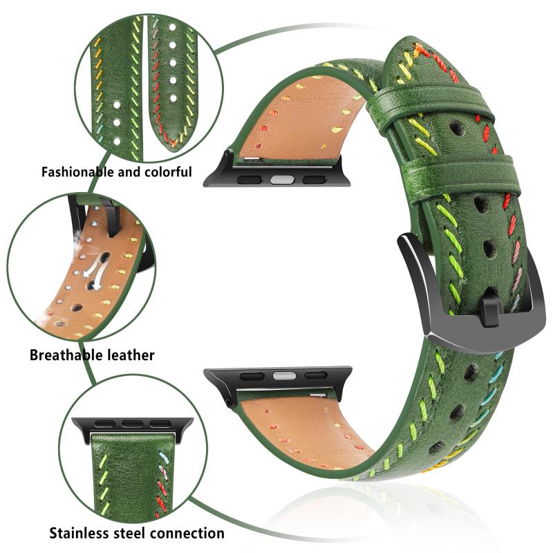 For Apple Watch SE 2022 40mm Colorful Sewing Thread Leather Watch Band(Green)