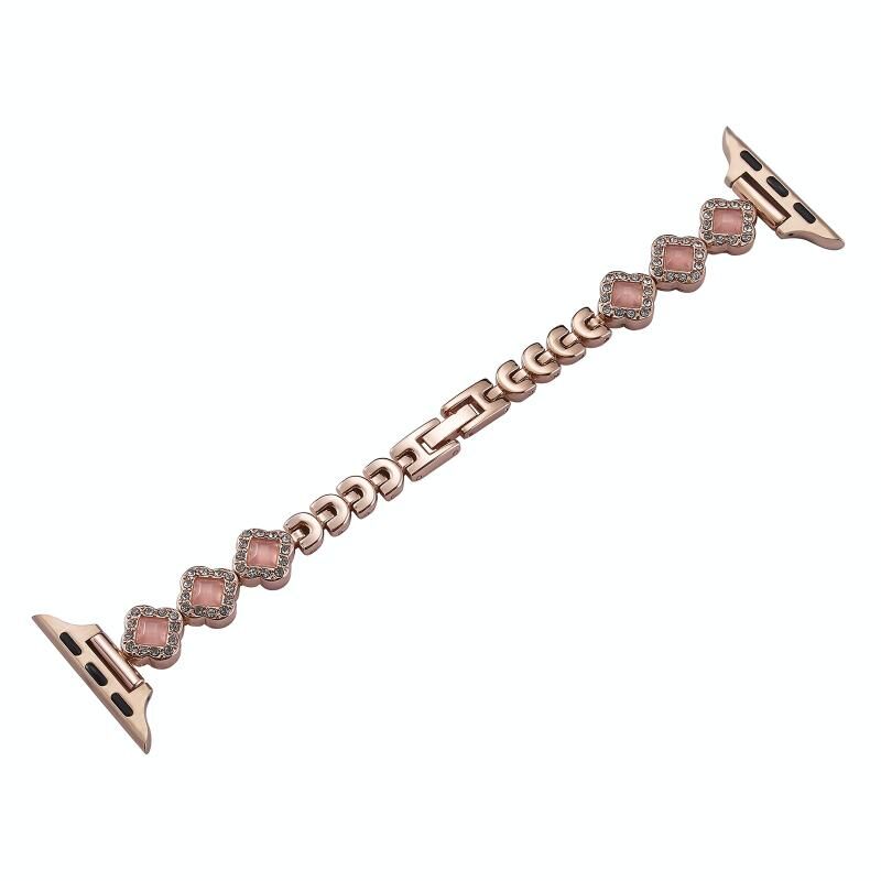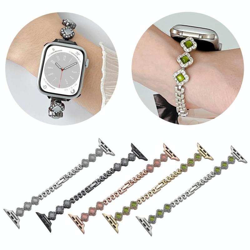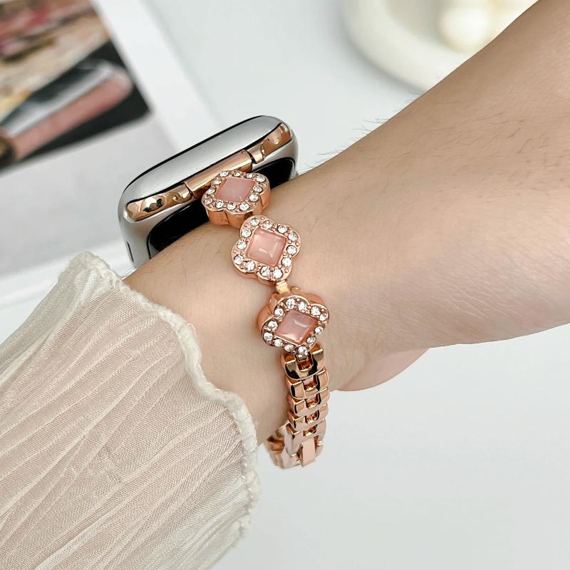 1. Rhinestones four-leaf clover chain and metal combination design strap