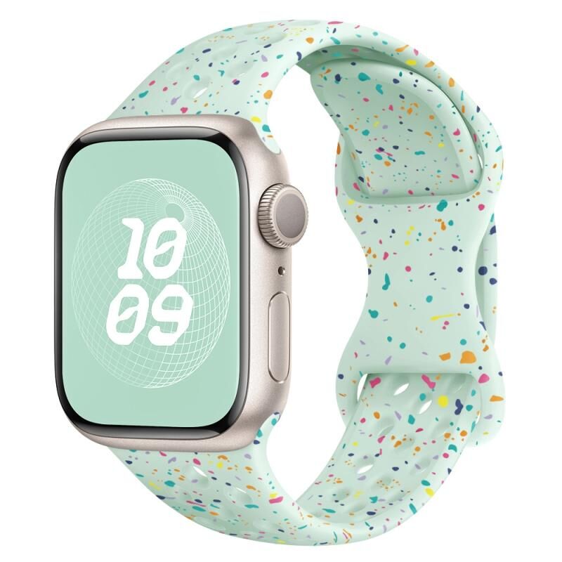 Για Apple Watch SE 2022 40mm Λουράκι Σιλικόνης με Αγκράφα Πεταλούδας και Σχέδιο Καμουφλάζ (Ανοιχτό Μέντα)