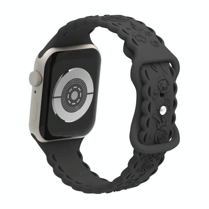 For Apple Watch SE 2022 40mm Lace 3D Rose Embossed Silicone Watch Band(Black)
