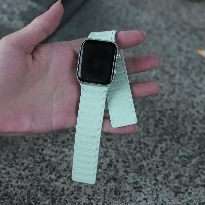 Για Apple Watch SE 2022 40mm Μαγνητικό Λουρί Σιλικόνης (Ανοιχτό Μέντα)