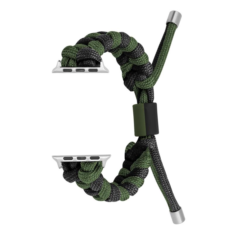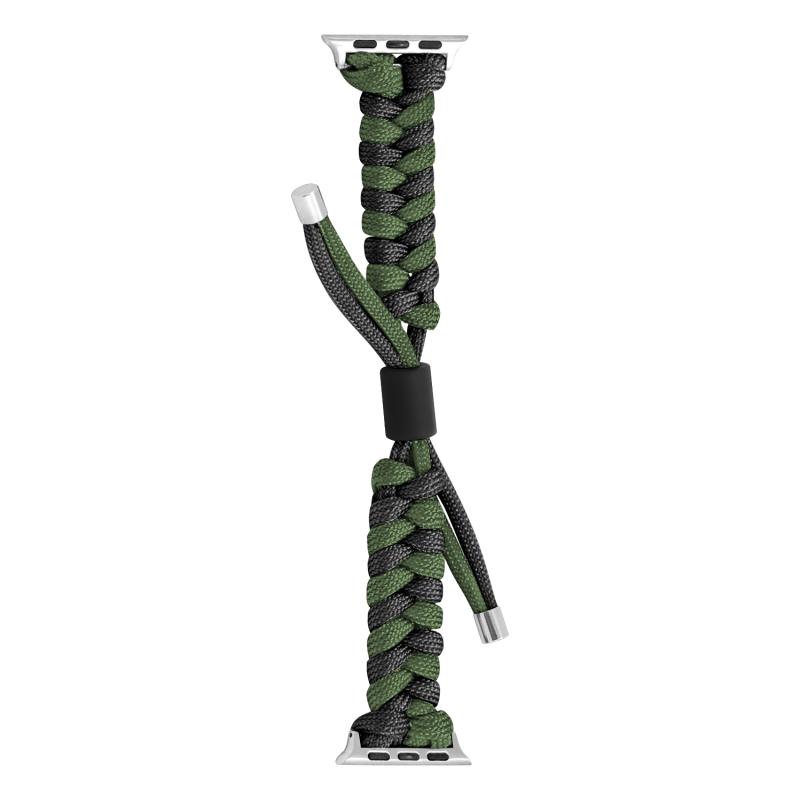 Για Apple Watch SE 2022 40mm Λουρί Παρακολούθησης με χάντρες σιλικόνης πλεγμένο με κορδόνι Paracord σε στυλ ουράς ψαριού (Μαύρο Στρατιωτικό Πράσινο)