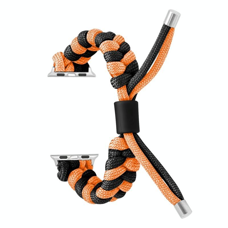 Για Apple Watch SE 2022 40mm Λουρί Παρακολούθησης με χάντρες σιλικόνης πλεγμένο με κορδόνι Paracord σε στυλ ουράς ψαριού (Μαύρο Πορτοκαλί)