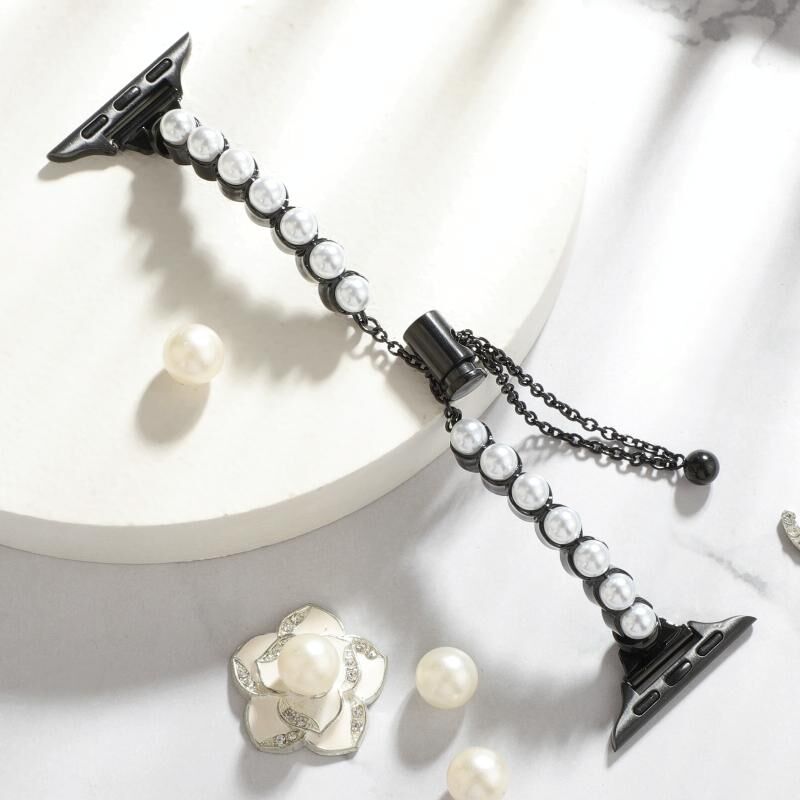 Για Apple Watch SE 2022 40mm Μαργαριταρένιο Βραχιόλι Μεταλλικό Λουράκι Ρολογιού (Μαύρο)
