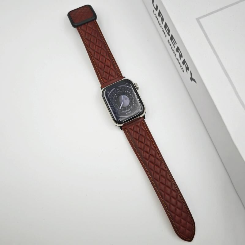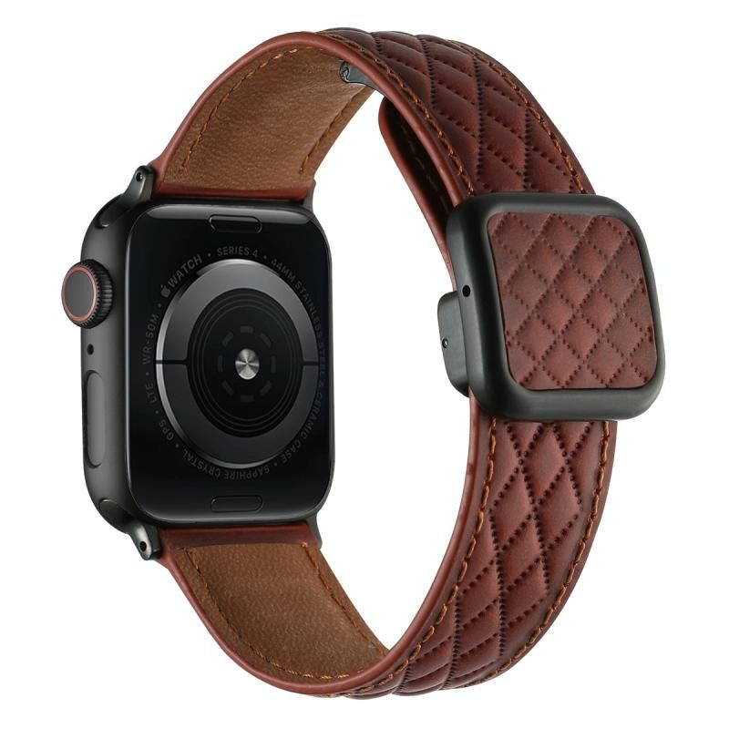 Για Apple Watch SE 2022 40mm Λουρί Ρολογιού από Δέρμα με Μαγνητική Αγκράφα Τετράγωνου Σχήματος με Σχέδιο Ρόμβου (Κόκκινο)