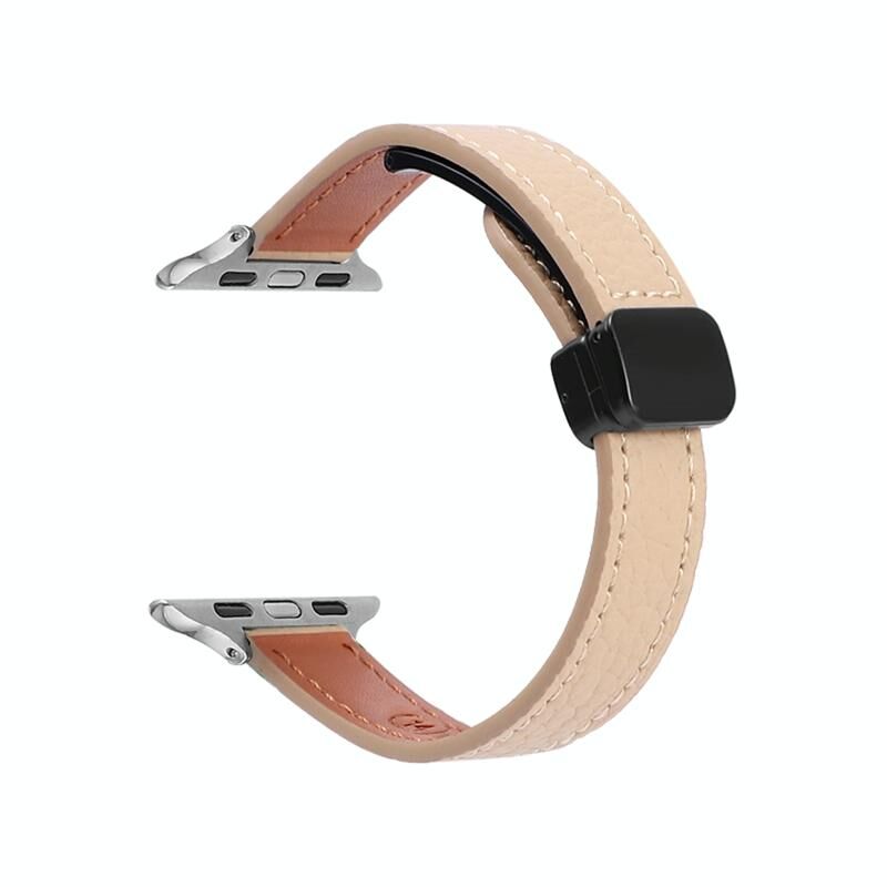 Για Apple Watch SE 2022 40mm Λεπτή Μαγνητική Αγκράφα Αυθεντικό Δερμάτινο Λουρί (Λίτσι Βερίκοκο)
