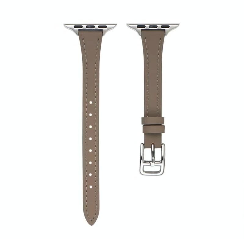 For Apple Watch SE 2022 40mm T-shaped Slim Genuine Leather Watch Band(Dark Brown)