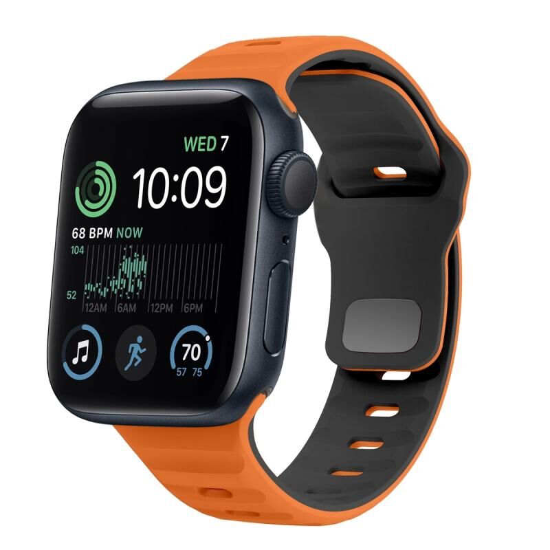 Για Apple Watch SE 2022 40mm Λουρί Σιλικόνης με Αγκράφα Αντίστροφης Κλειδαριάς και Υφή Κύματος (Πορτοκαλί-Μαύρο)