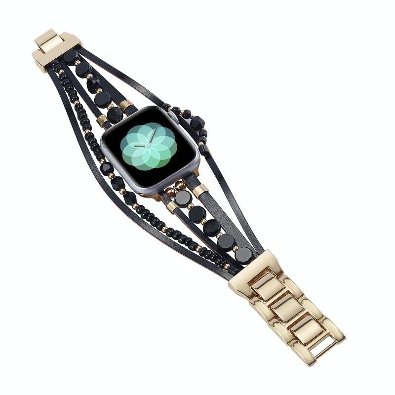 Για Apple Watch SE 2022 44mm Βραχιόλι με Χάντρες Εθνικού Στυλ Κρυστάλλινο Λουράκι Ρολογιού (Μαύρο)