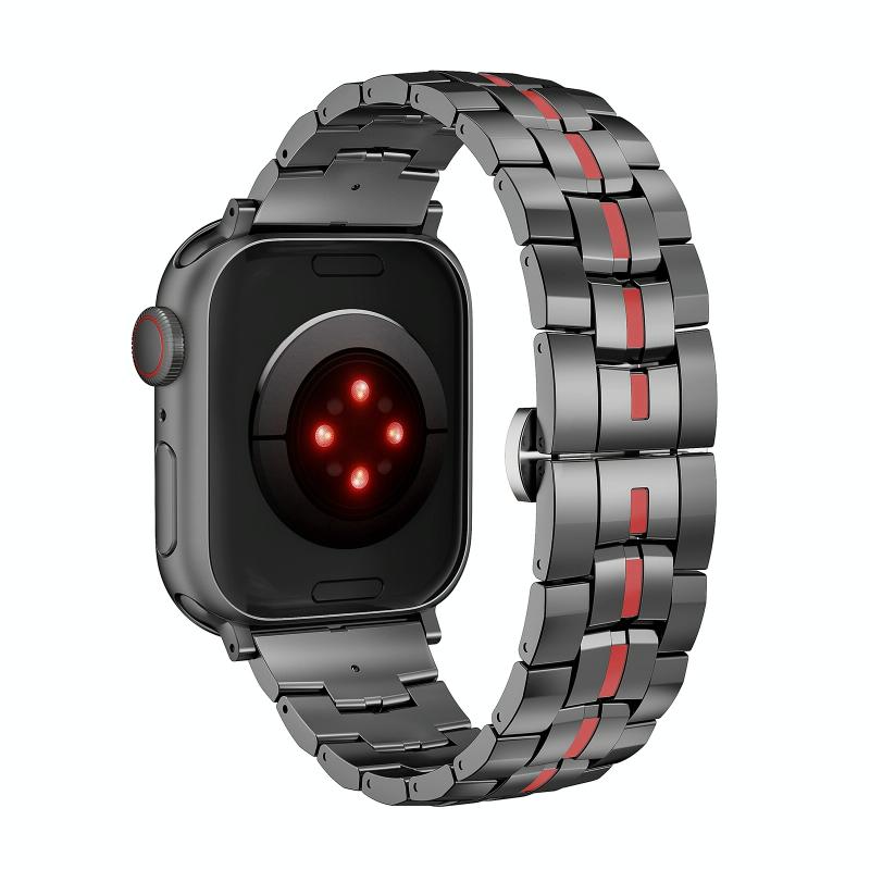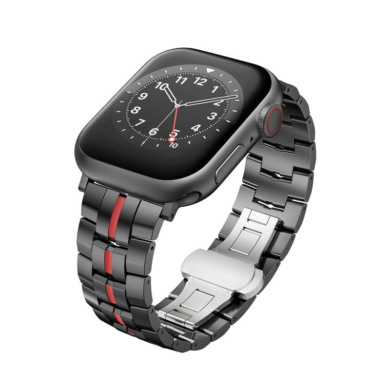 For Apple Watch SE 2022 44mm Butterfly Buckle 5-Beads Metal Watch Band(Black Red)