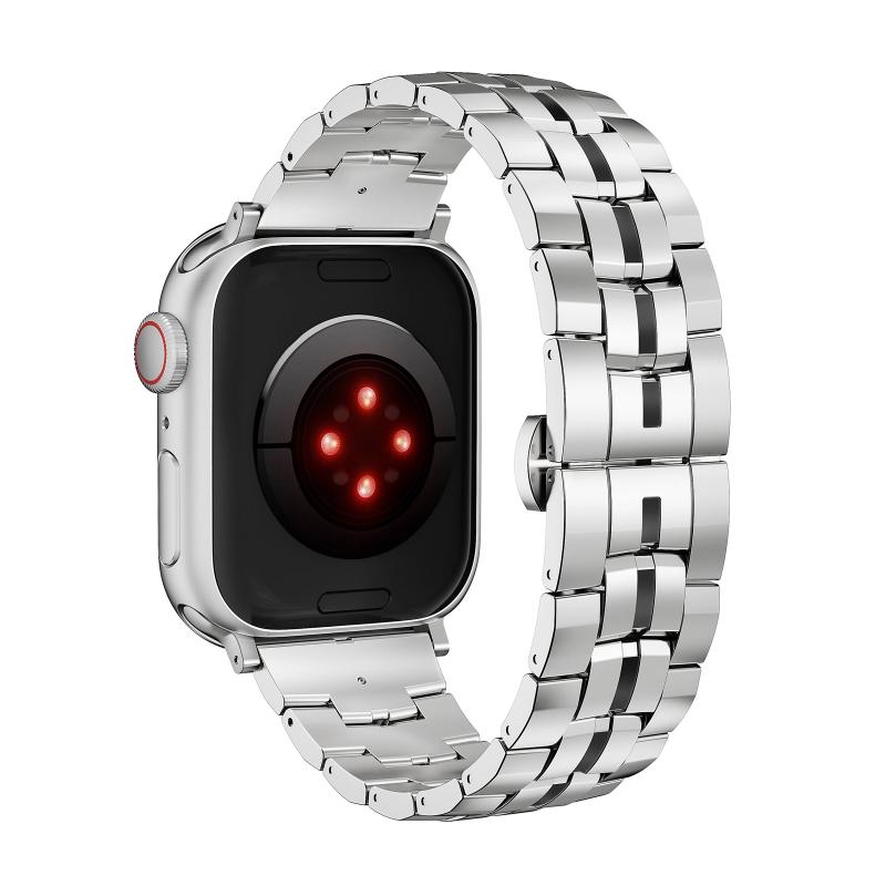 Για Apple Watch SE 2022 44mm Αγκράφα Πεταλούδας 5-Σφαιρών Μεταλλικό Λουρί Ρολογιού (Μαύρο Κόκκινο)