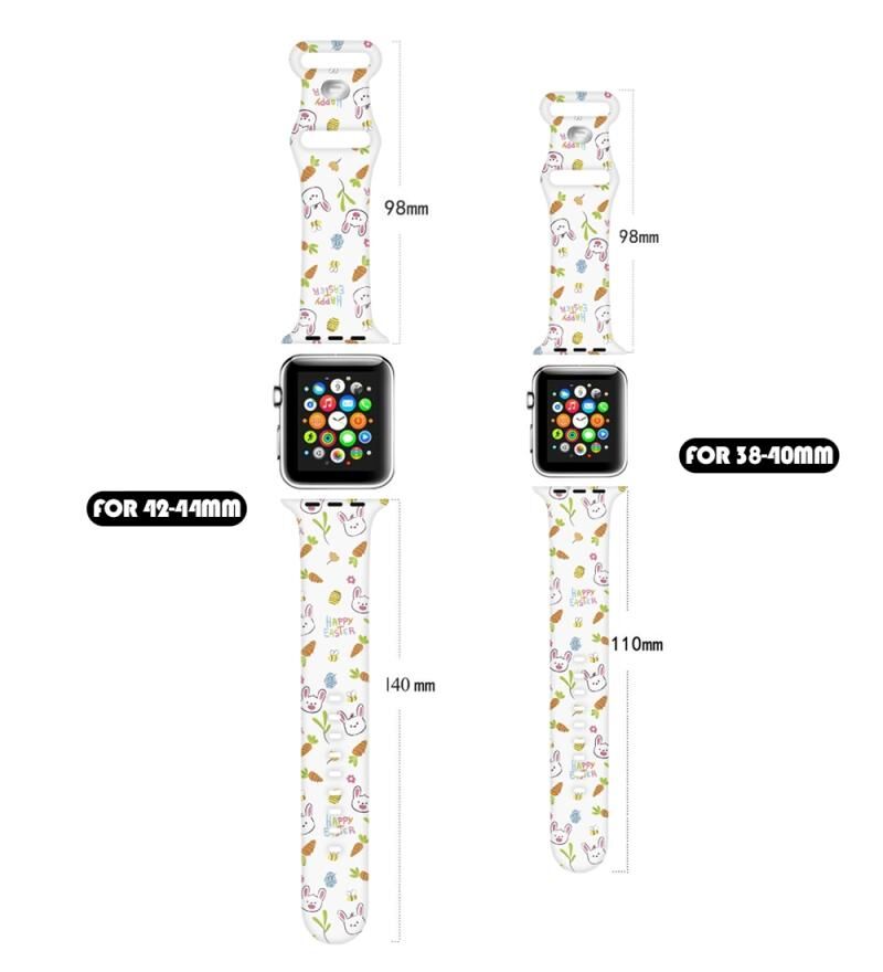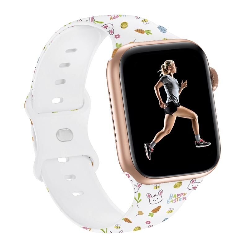 Για Apple Watch SE 2022 44mm Λουρί Σιλικόνης με Αγκράφα Πεταλούδας με Εκτύπωση Πασχαλινή (Γαλάζιο Κουνελάκι)
