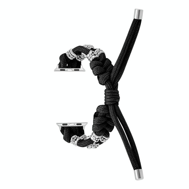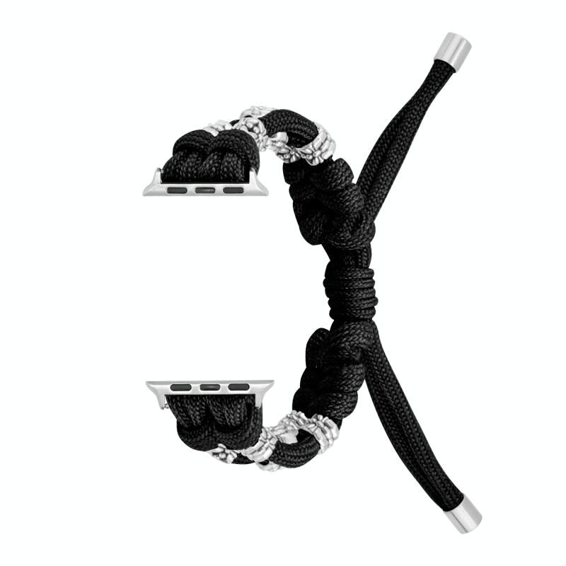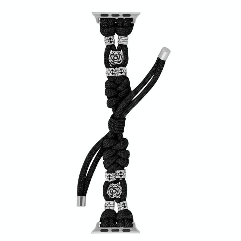Για Apple Watch SE 2022 44mm Λουλούδι Χρυσάνθεμου, Πλεκτή Ζώνη Ρολογιού από Παρακορδ (Μαύρο)