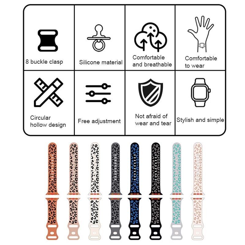 Για Apple Watch SE 2022 44mm Κυρτό Λουρί Σιλικόνης με Εκτύπωση Λεοπάρδαλης (Μαύρο Μπλε)