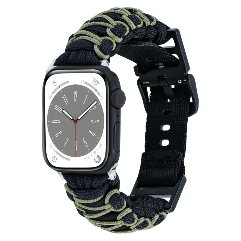 Για Apple Watch SE 2022 44mm Διπλό πλεγμένο λουρί ρολογιού με αγκράφα paracord (Ναυτικό Πράσινο Στρατού)