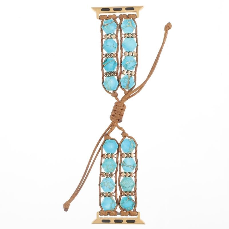 Για Apple Watch SE 2022 44mm Λουρί Ρολογιού με Αλυσίδα με Κορδόνι Σύσφιξης και Εξάγωνα Πέτρινα Στοιχεία (Μπλε)
