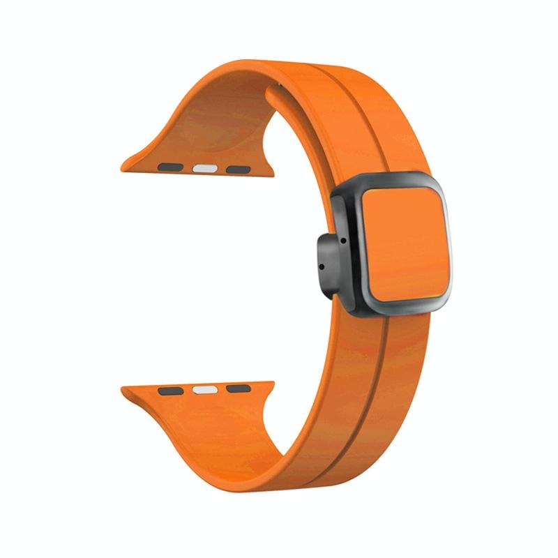 For Apple Watch SE 2022 44mm Magnetic Square Buckle Silicone Watch Band(Orange)