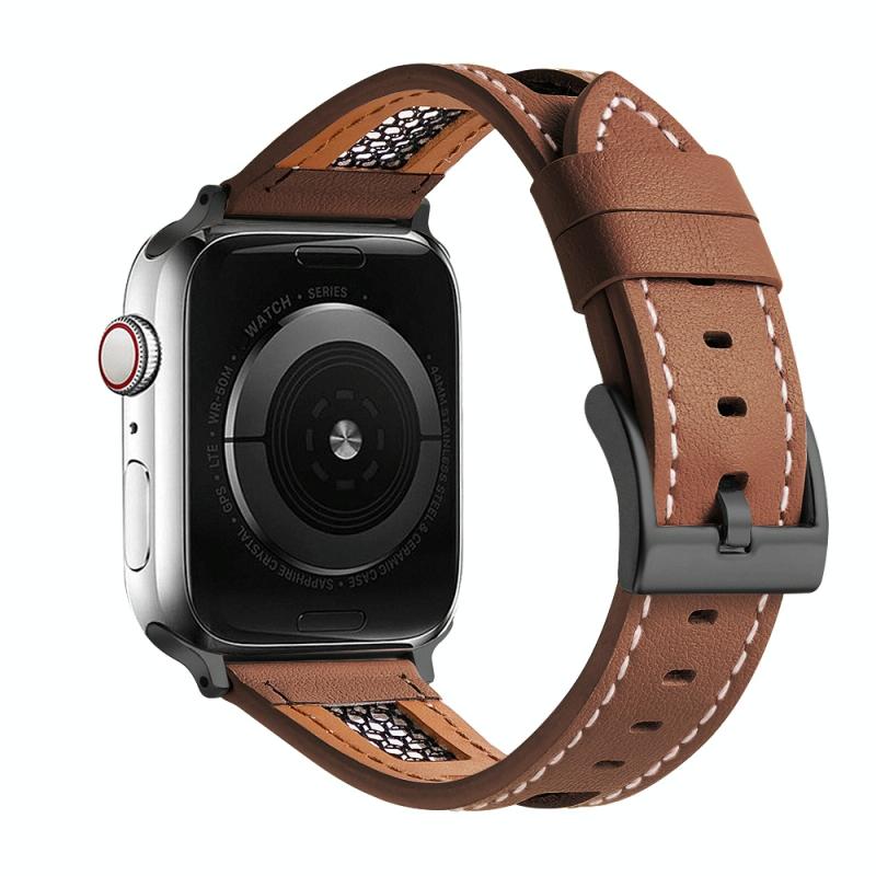 Για Apple Watch SE 2022 44mm Μπρασλέ Λουρί από γνήσιο δέρμα μοσχαριού πλέγματος (Σκούρο καφέ)