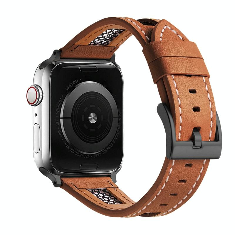Για Apple Watch SE 2022 44mm Μπρασλέ Λουρί από γνήσιο δέρμα μοσχαριού πλέγματος (Ανοιχτό καφέ)
