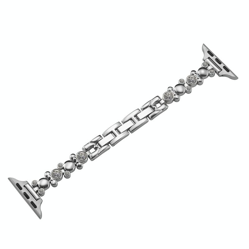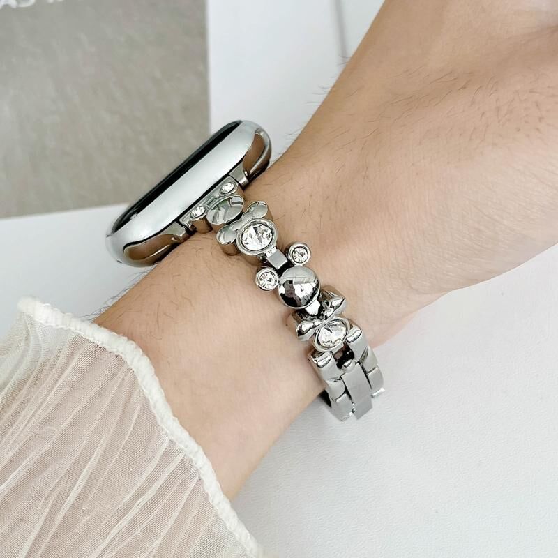 For Apple Watch SE 2022 44mm Metal Diamond Bear Chain Watch Band(Silver)