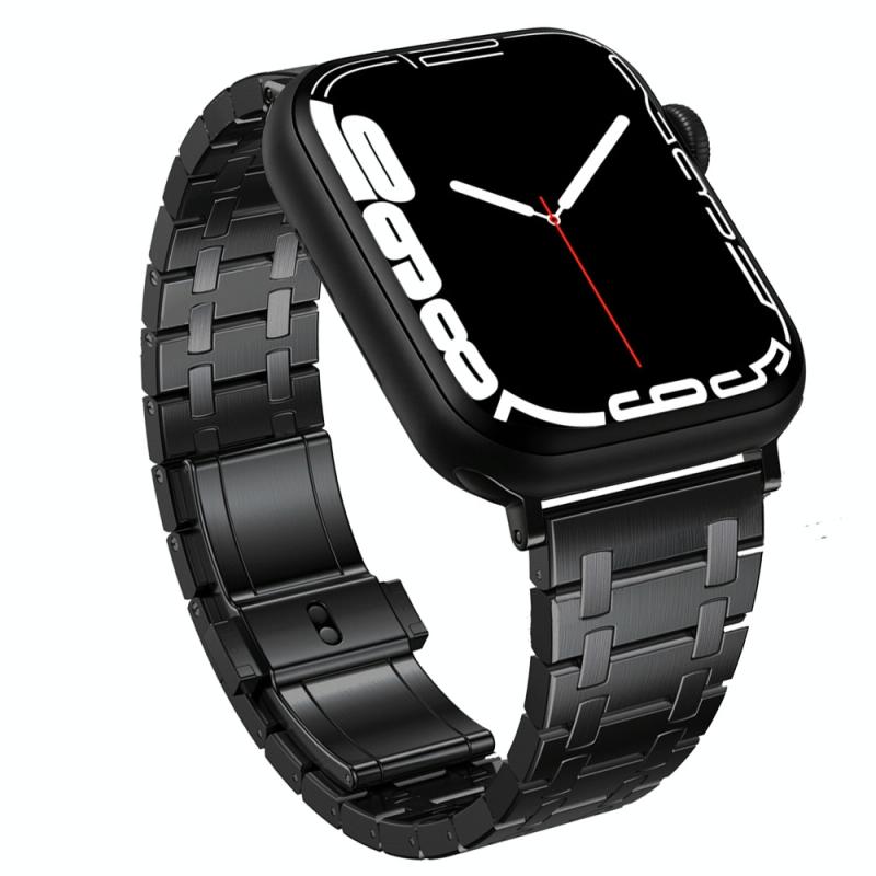 Για Apple Watch SE 2022 44mm Τροποποιημένο Δερμάτινο Λουράκι AP από Κράμα Τιτανίου (Μαύρο)
