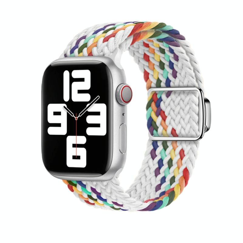 Για Apple Watch SE 2022 44mm Λουρί από Νάιλον με Μαγνητικό Κούμπωμα (Λευκό ουράνιο τόξο)