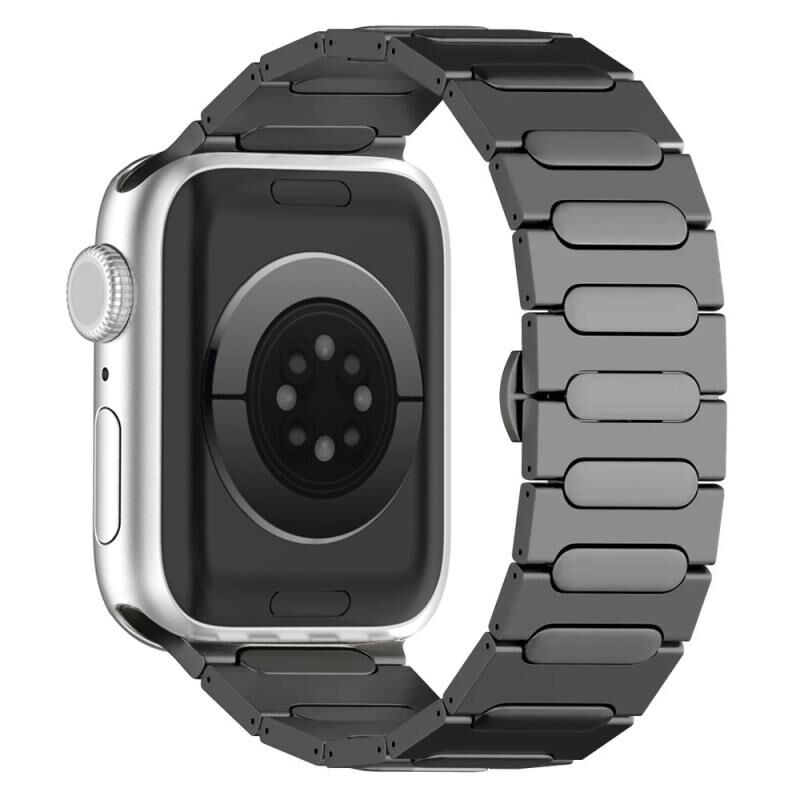 For Apple Watch SE 2022 44mm Oval Butterfly Buckle Titanium Alloy Watch Band(Grey)