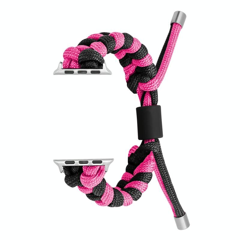 Για Apple Watch SE 2022 44mm Λουρί Παρακολούθησης με χάντρες σιλικόνης πλεγμένο με κορδόνι Paracord σε στυλ ουράς ψαριού (Μαύρο Ρόδο Κόκκινο)