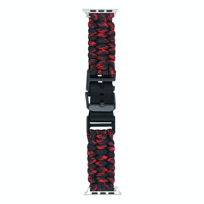 Για Apple Watch SE 2022 44mm, Απλή πλεκτή λουρί καρπού από paracord με αγκράφα (Μαύρο Κόκκινο)