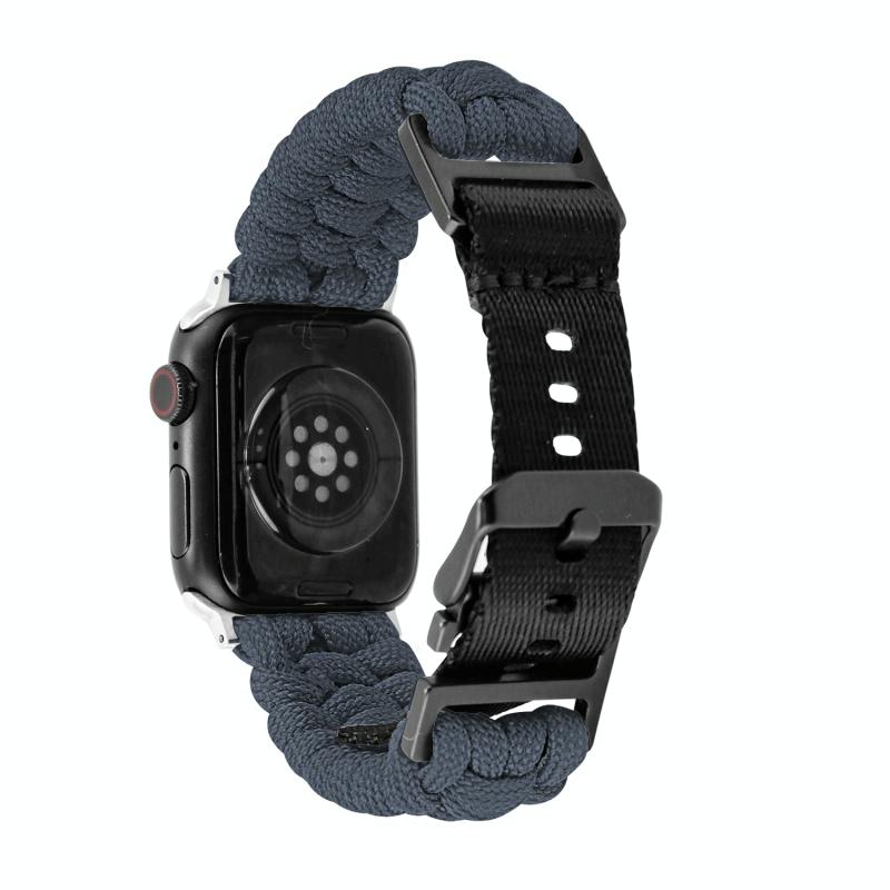 Για Apple Watch SE 2022 44mm, Απλή πλεκτή λουρί καρπού από paracord με αγκράφα (Μαύρο)