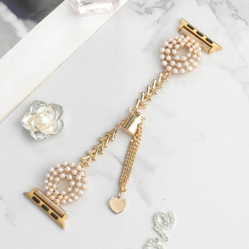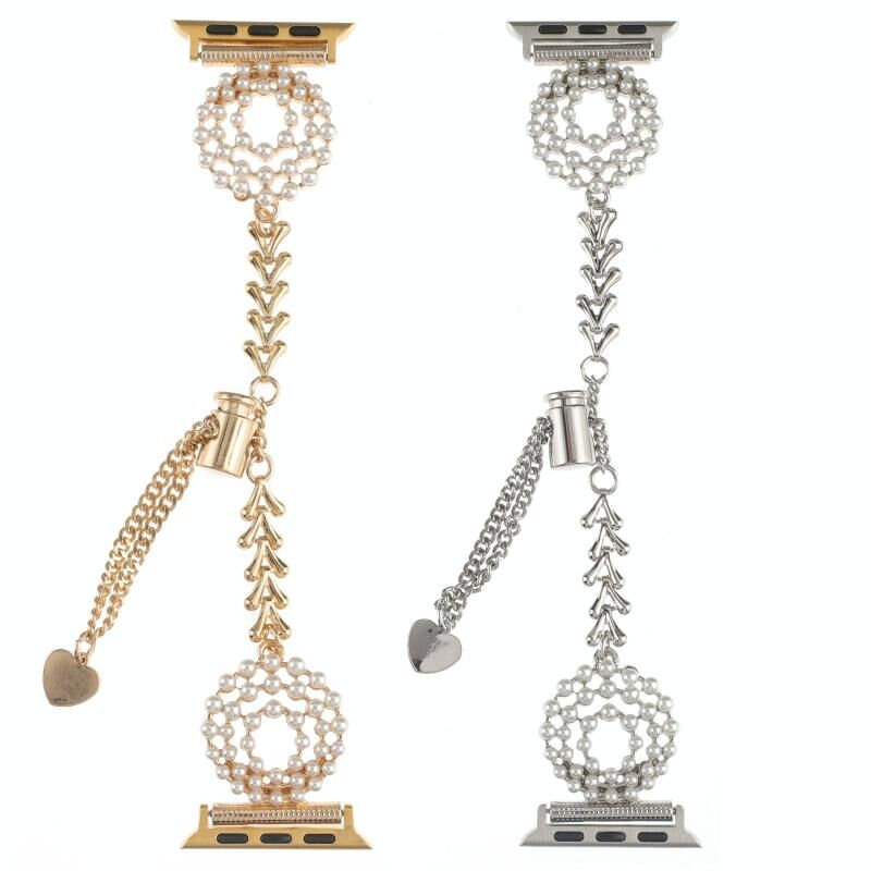 Για Apple Watch SE 2022 44mm Μαργαριταρένια Στρογγυλή Αλυσίδα από Κράμα Ψευδαργύρου Μεταλλικό Λουρί Ρολογιού (Χρυσό)