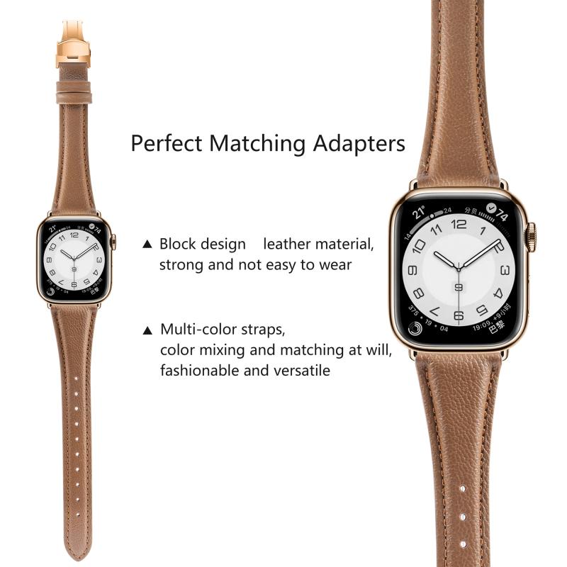 Για Apple Watch SE 2022 44mm Απλό Δερμάτινο Λουράκι με Αγκράφα Πεταλούδας (Σκούρο Καφέ+Ασημί)