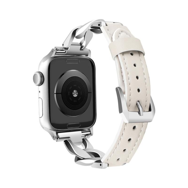 Για Apple Watch SE 2022 44mm Λουράκι Δερμάτινο με Αλυσίδα & Στρας (Μπεζ)