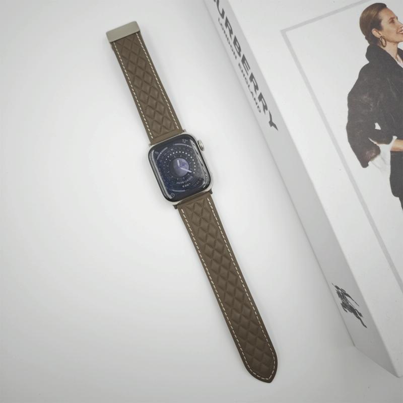 Για Apple Watch SE 2022 44mm Λουρί Ρολογιού από Δέρμα με Μαγνητική Αγκράφα που Διπλώνει, με Σχέδιο Ρόμβου (Καφέ)