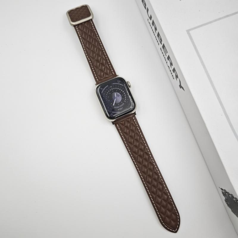 Για Apple Watch SE 2022 44mm Λουρί Ρολογιού από Δέρμα με Μαγνητική Αγκράφα Τετράγωνου Σχήματος με Σχέδιο Ρόμβου (Σκούρο Καφέ)