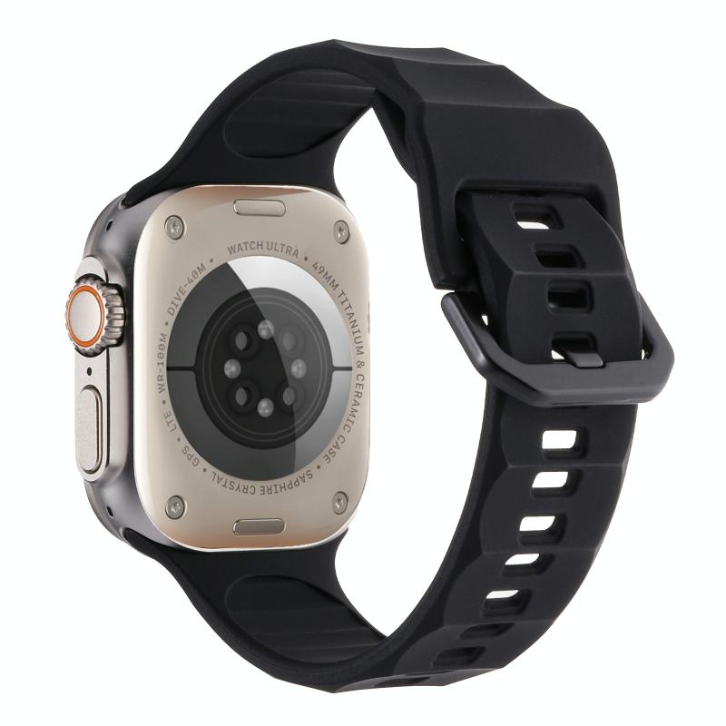 For Apple Watch SE 2022 44mm Ripple Silicone Sports Watch Band(Black)