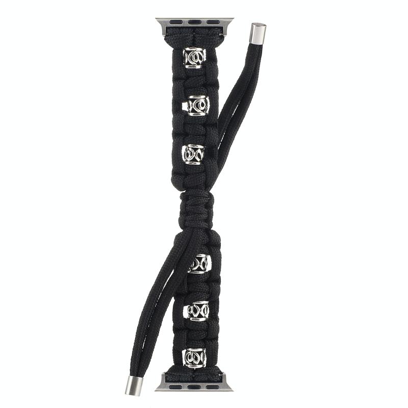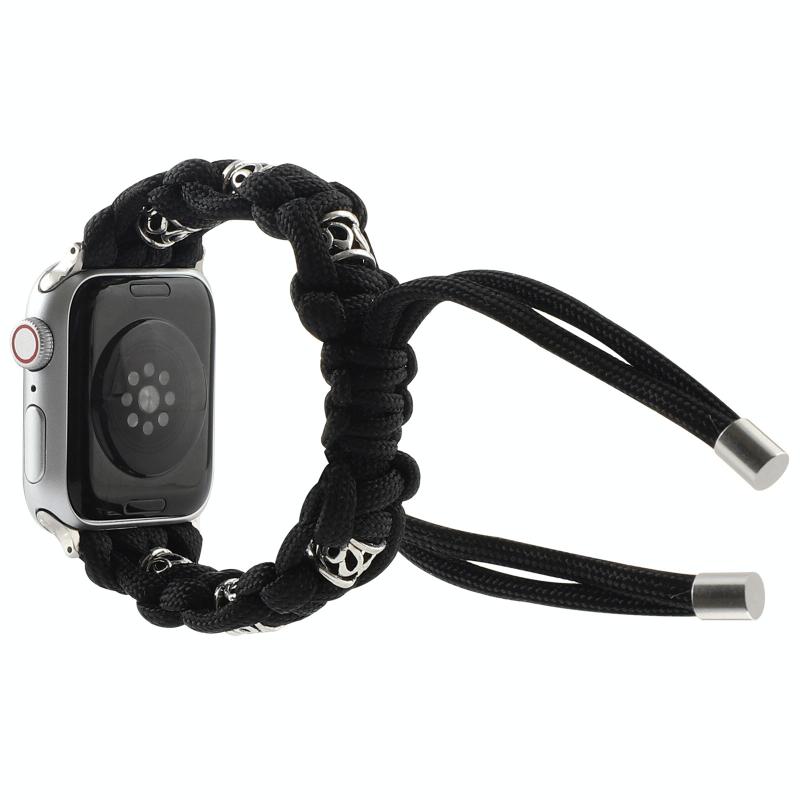 For Apple Watch SE 2022 44mm Silk Silver Beads Braided Watch Band(Black)