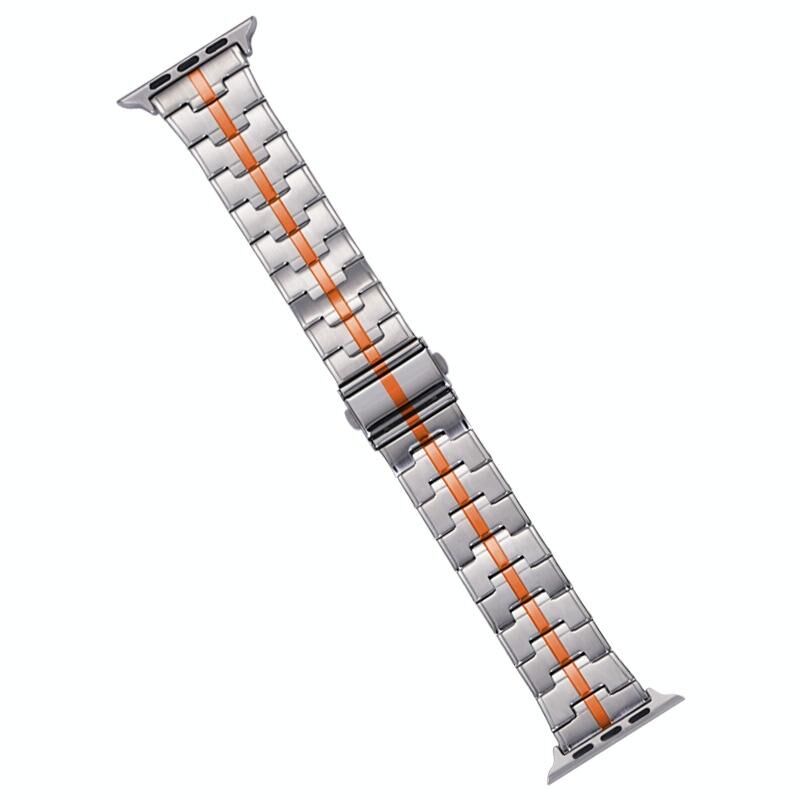 For Apple Watch SE 2022 44mm Stainless Steel Watch Band(Silver Orange)