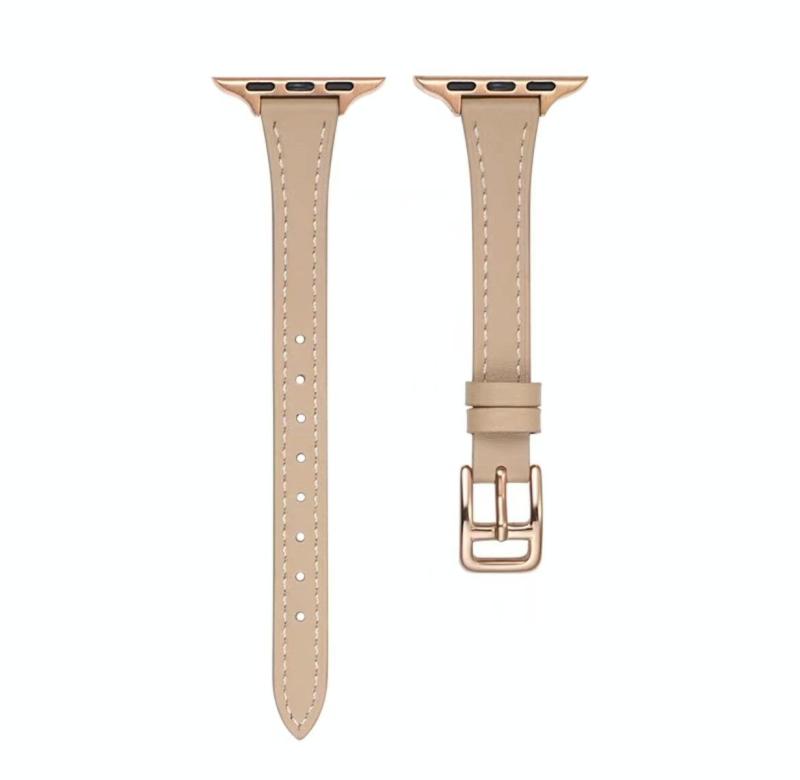For Apple Watch SE 2022 44mm T-shaped Slim Genuine Leather Watch Band(Apricot)