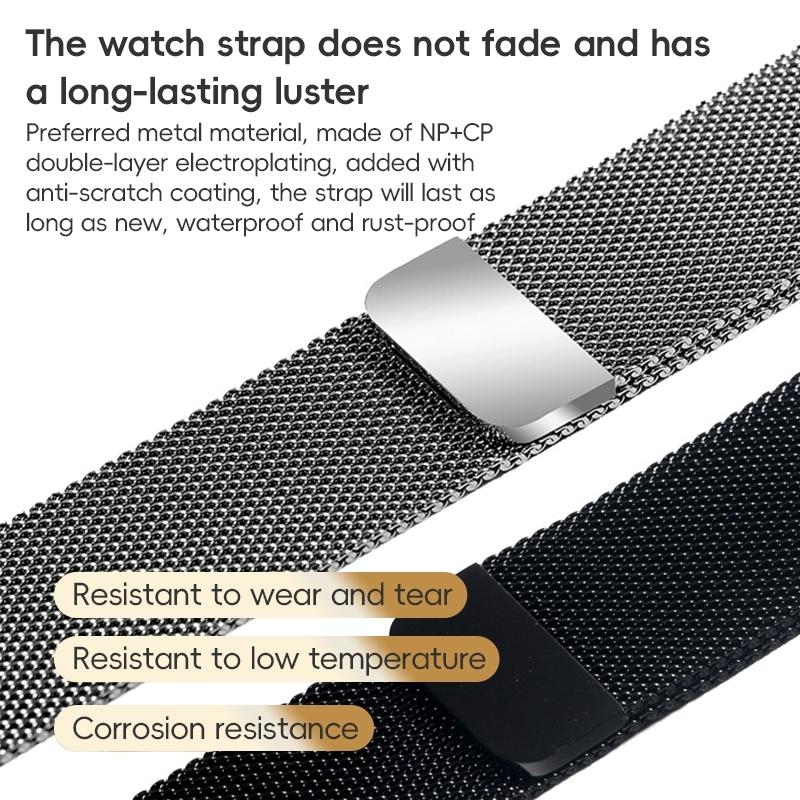 4. Made of metal, it is electroplated and added with an anti-scratch coating. The strap will last as long as new, is waterproof and will not easily rust.