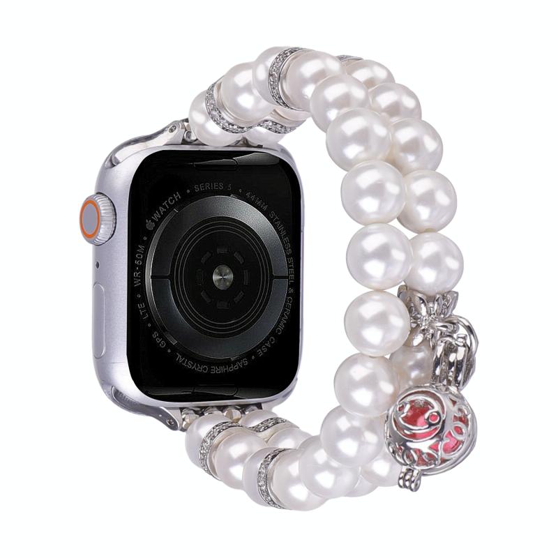 For Apple Watch SE 2023 40mm Beaded Dual Row Pearl Bracelet Watch Band(White)