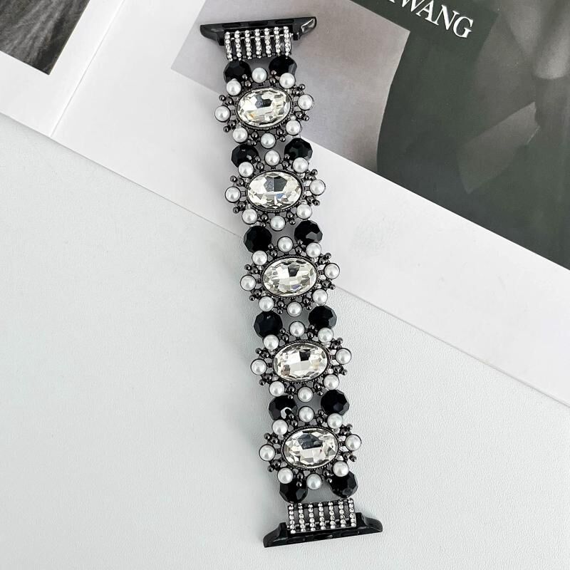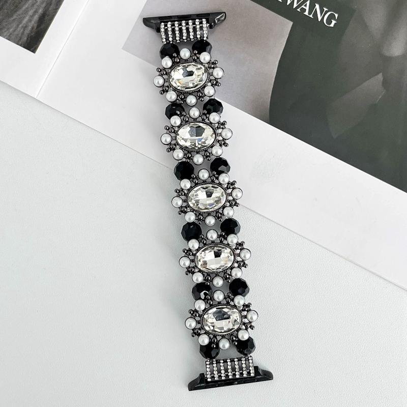 For Apple Watch SE 2023 40mm Beaded Pearl Gemstone Bracelet Watch Band(Black)