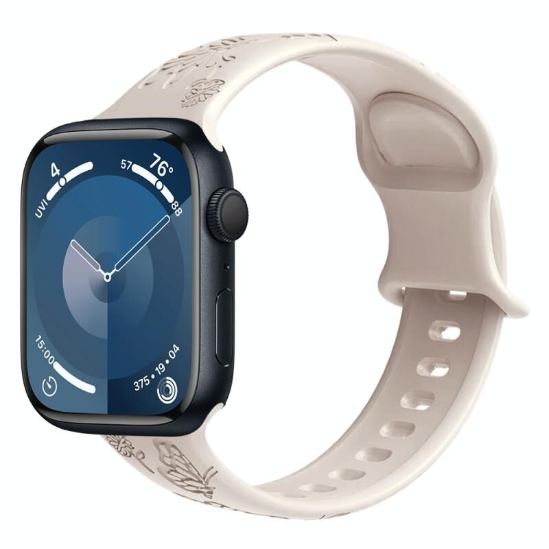 Για Apple Watch SE 2023 40mm Λουρί Σιλικόνης με ανάγλυφο σχέδιο πεταλούδας και λουλουδιών (Starlight)